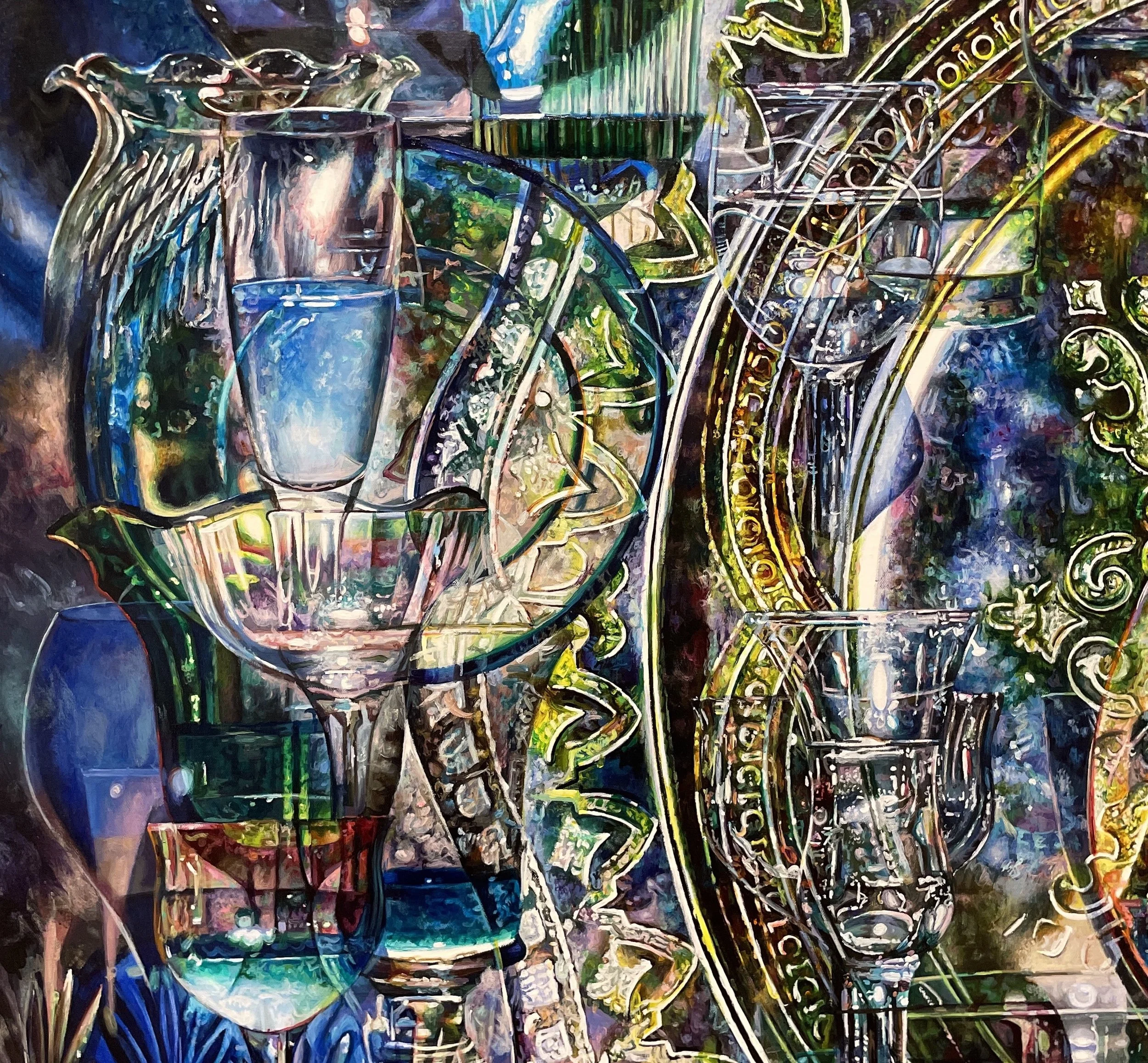 Plate with Wreath (Pond), acrylic on canvas, 80”x84”, 2016